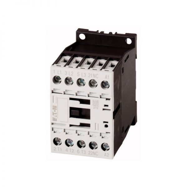 Contactor de Aplicación: Contactores para Motores, Contactores hasta 170 A, 3 polos, categoría de Utilización: AC-1: No inductivas o ligeramente cargas inductivas, hornos de resistencia, NAC-3: CA Normal motores de inducción: arranque, interruptor de apagado durante el funcionamiento, AC-4: CA Normal motores de inducción: arranque, frenado por contracorriente, inversión de marcha, marcha lenta, técnica de Conexión: terminales de Tornillo, Notas: También es adecuado para motores con clase de eficiencia IE3., IE3-listo dispositivos se identifican por el logotipo en su embalaje., Número de polos: 3 polos, corriente de operación Nominal AC-3 380 V 400 V: Ie= 12 A, corriente de operación Nominal de CA-1 Convencional de aire libre de la corriente térmica, de 3 polos, 50 – 60 Hz Abierto a 40 °C: Ith =Ie= 22, cerrado: Ith= 18 A, corriente de operación Nominal de CA-1 Convencional de aire libre de la corriente térmica, 1 polo abierto: Ith= 50 A, cerrado: Ith= 45 A, Max. clasificación de motores trifásicos, 50 – 60 Hz AC-3 220 V 230 V: P= 3.5 kW, 380 V 400 V: P= 5.5 kW, 660 V 690 V: P= 6,5 kW, Max. clasificación de motores trifásicos, 50 – 60 Hz CA-4 220 V 230 V: P= 2 kW, 380 V 400 V: P= 3 kW, 660 V 690 V: P= 4.4 kW, Puede ser combinado con contacto auxiliar: DILA-XHI(V).., Contactos N/C = Normalmente cerrado: 1 NC, Instrucciones: Contactos EN 50 012., con espejo de contacto., Tensión AC/DC: corriente ALTERNA