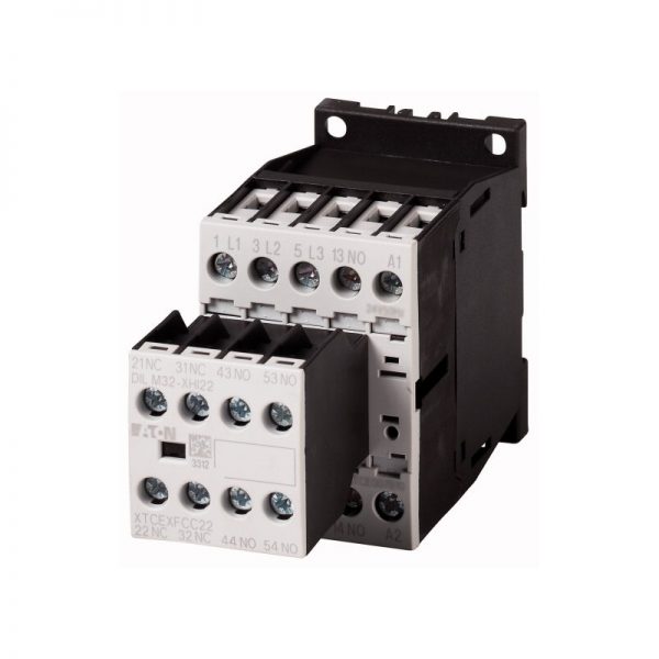 Contactor de Aplicación: Contactores para Motores, aparatos Completos hasta 170 A, categoría de Utilización: AC-1: No inductivas o ligeramente cargas inductivas, hornos de resistencia, NAC-3: CA Normal motores de inducción: arranque, interruptor de apagado durante el funcionamiento, AC-4: CA Normal motores de inducción: arranque, frenado por contracorriente, inversión de marcha, marcha lenta, técnica de Conexión: terminales de Tornillo, Notas: También es adecuado para motores con clase de eficiencia IE3., IE3-listo dispositivos se identifican por el logotipo en su embalaje., Corriente de operación nominal AC-3 380 V 400 V: Ie= 9 A, corriente de operación Nominal de CA-1 Convencional de aire libre de la corriente térmica, de 3 polos, 50 – 60 Hz Abierto a 40 °C: Ith =Ie= 22, cerrado: Ith= 18 A, corriente de operación Nominal de CA-1 Convencional de aire libre de la corriente térmica, 1 polo abierto: Ith= 50 A, cerrado: Ith= 45 A, Max. clasificación de motores trifásicos, 50 – 60 Hz AC-3 220 V 230 V: P= 2,5 kW, 380 V 400 V: P= 4 kW, 660 V 690 V: P= 4,5 kW, Max. clasificación de motores trifásicos, 50 – 60 Hz CA-4 220 V 230 V: P= 1.5 kW, 380 V 400 V: P= 2,5 kW, 660 V 690 V: P= 3,6 kW, Contactos N/O = Normalmente abierto: 3 N/S, Contactos N/C = Normalmente cerrado: 2 NC, Instrucciones: Contactos EN 50 012., Integrado varistor supresor de circuito., con espejo de contacto., Tensión AC/DC: DC operación